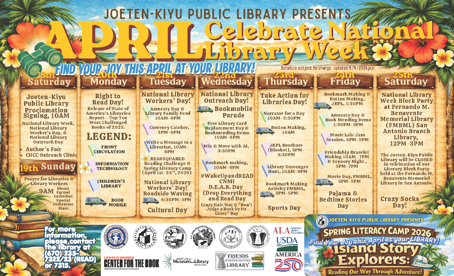 Hafa Adai and Tirow! Search the Joeten Kiyu Public Library's online catalog