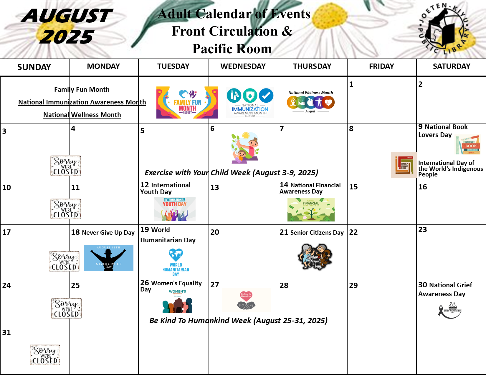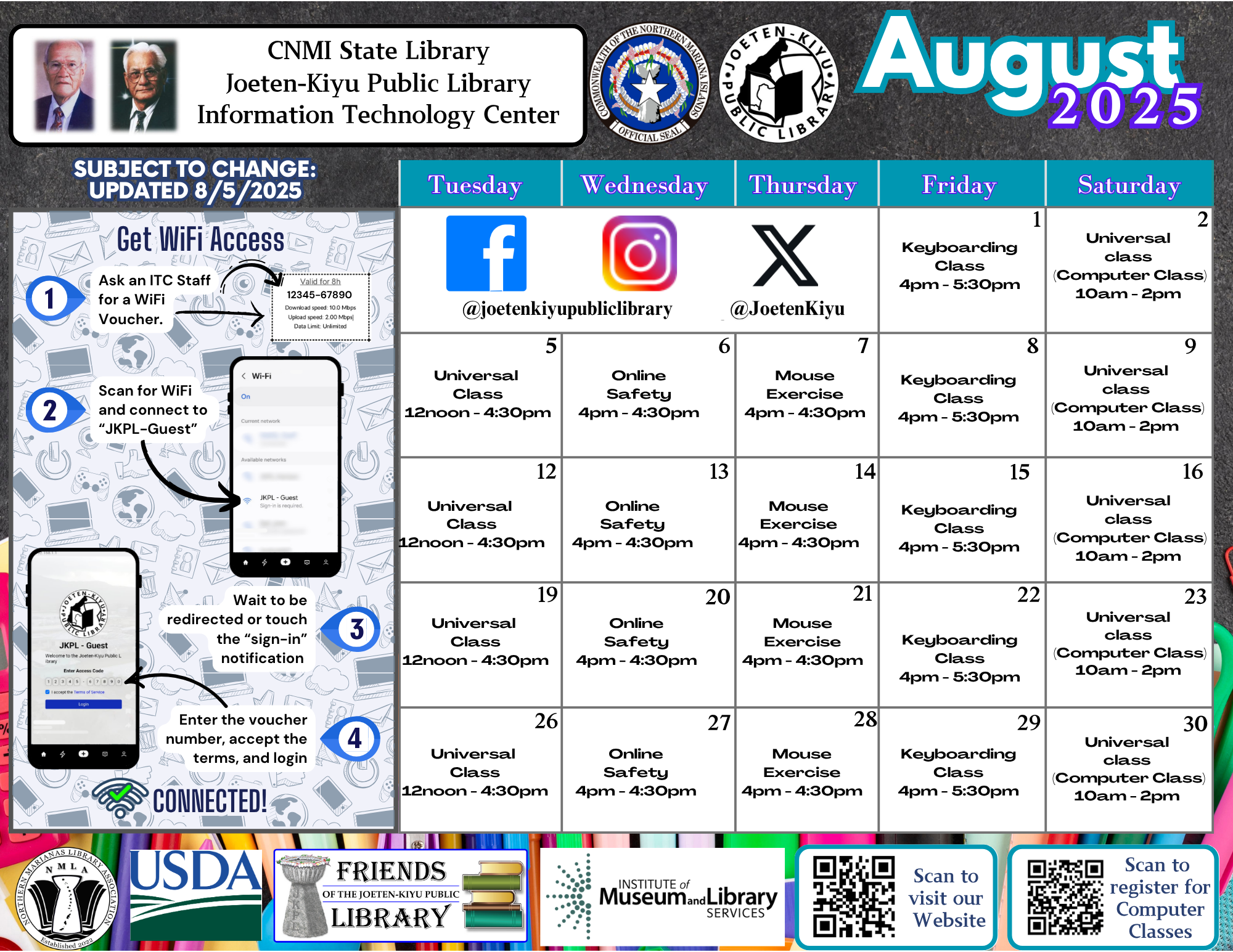 Posted on August 7, 2025August 19, 2025August 2025 Calendar of Events Children's Library Front Circulation Information Technology Center Antonio C. Atalig Memorial Library